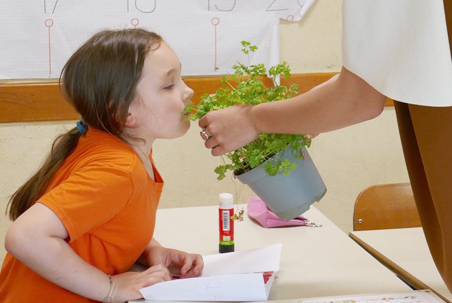 なんとバラエティーに富んだ授業内容!子供たちはどのテーマも体験&体感しながら学ぶのですが、食材の香りを嗅ぐときや味見をするときの顔つきがすごい。私が普段参加するワインやオイルテイスティングに来ている大人と変わらない真剣さには、こちらも息をのむほどでした。
