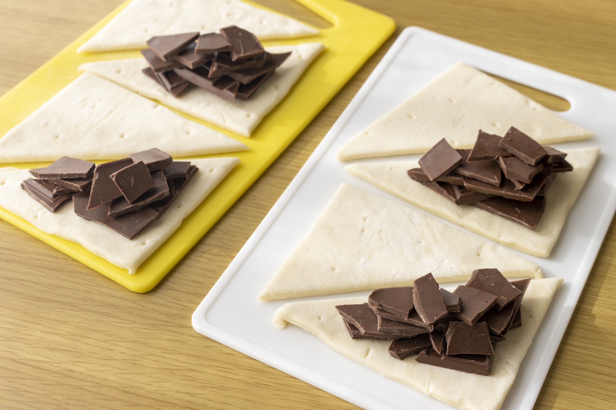 パイシートを使用する際は、完全に解凍する必要はありません。しっかりと解凍して常温に戻してしまうと、生地に含まれるバターが溶けてしまい、上手に膨らまなくなります。