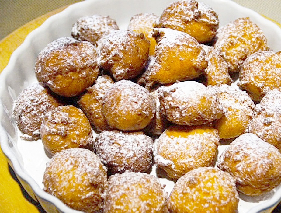 また丸いドーナツのようなカスタニョーレ。中にカスタードクリームやリコッタチーズのクリームが詰まっている子供も大人も大好きなお菓子です。その他、‘血‘という意味のサングイナッチョは、昔の農民たちが食べていた豚の血がはいったチョコレートクリーム。92年以降は法律により血を食品に入れることが禁止され、チョコレートだけのクリームになりました。2月に入るとこれらのお菓子がパン屋さんやお菓子屋さんにずらりと並び、今年もいよいよカーニバルの時期がやってきたんだなと認識します。