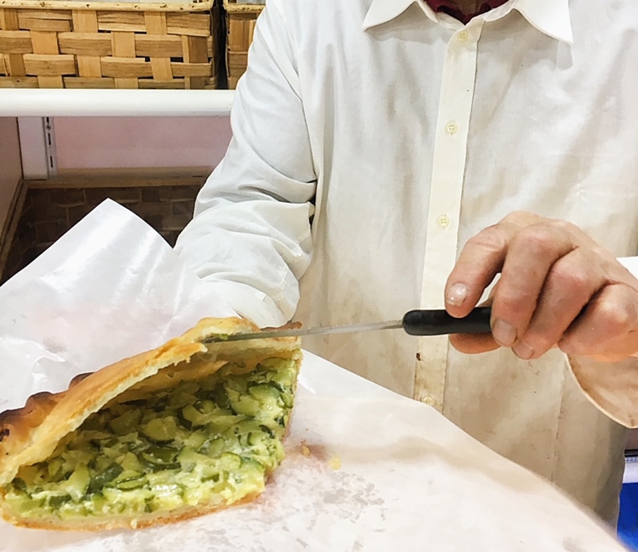 レッジョの街にはエルバッツォーネのお店がたくさんあります。わたしこれを初めて食べたとき、パリパリとした薄いパイ生地の香ばしさとみっちりと詰まったビエトラとラードのコンビネーションに感動したのを今でも覚えています。