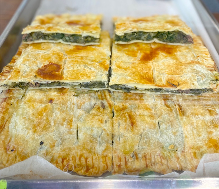 家庭でもパイ生地だけ既製のものを買い、冷蔵庫の余り野菜や、前日の残りの野菜を炒めて作ります。この郷土食の良いところは野菜がたくさん食べられるところ。野菜嫌いでもトルタ・サラータなら食べるという子供も多いそう。