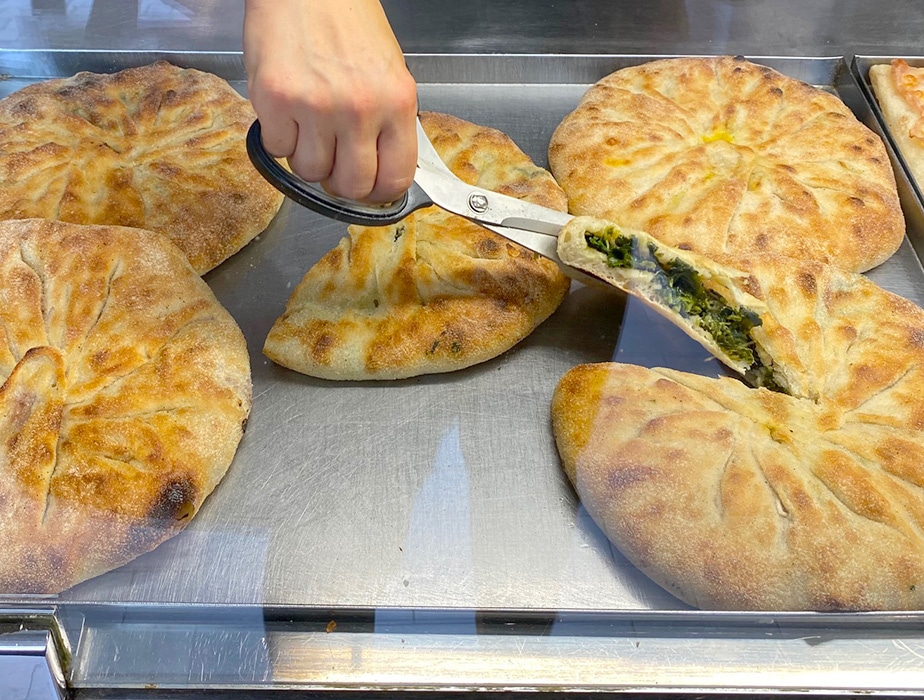 薄い生地ですが、もちっとした噛み応えがたまりません。具材も一般的なエンダイブやほうれん草もあれば、かぼちゃのクリームや、赤玉ねぎをビネガーで炒めたものなどさまざまなバリエーションがあります。