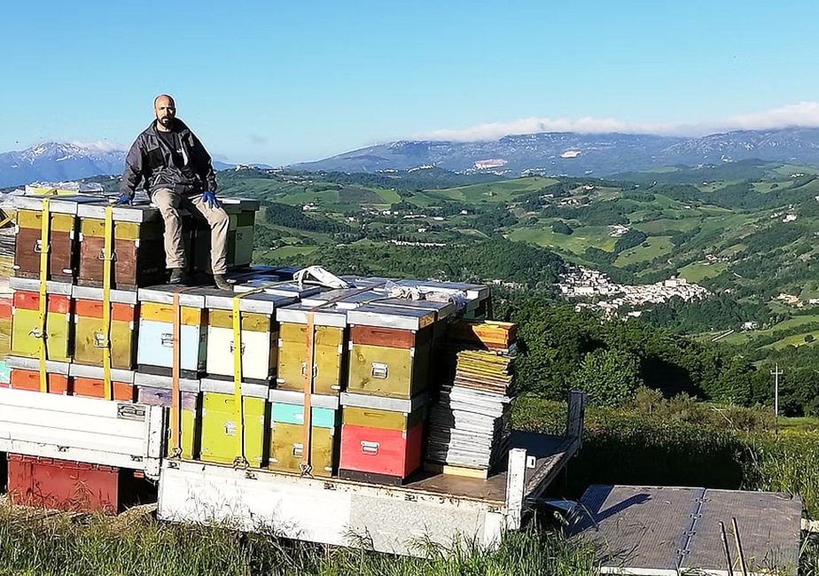ディエゴさんの養蜂は独特で、一か所に巣箱を置いて蜜を採取するのではなく、中部から南部イタリアを巣箱ごと移動しながら養蜂を行っています。