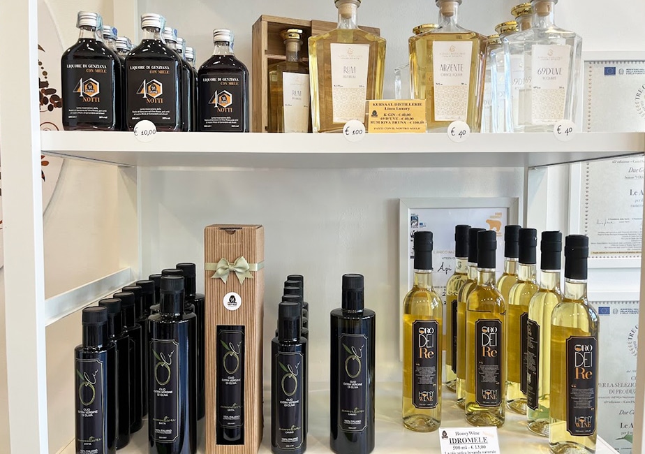 さらに、ハチミツを使ったラムやアマーロ(食後酒)、自社生産の化粧品、かわいらしいパッケージのキャンディーなども並びます。