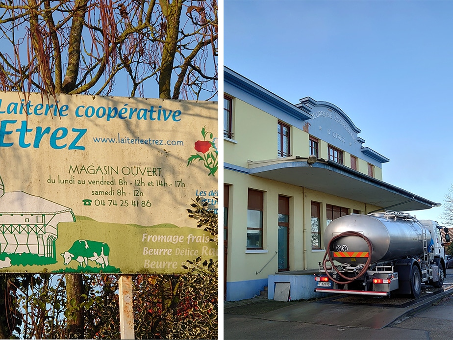バターを産するエトレ村は、ローヌ・アルプ地域圏アン県の県庁所在地、ブル・カン・ブレスから北に車で30分ほどのところにあり、そこから北東方向のフランシュ・コンテ、北西のブルゴーニュ双方の南に位置する、一面にのどかな牧場が広がる小さな村です。