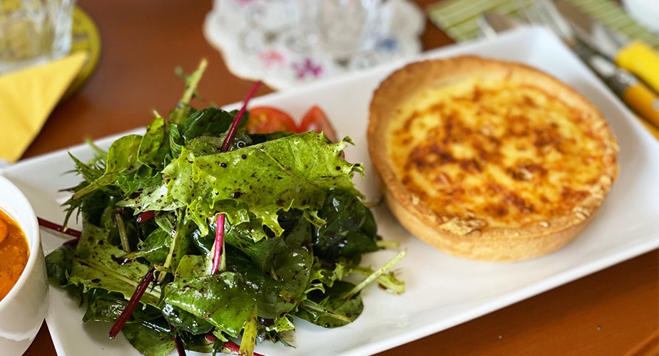 サラダをお皿に盛りつけたら、あとはキッシュの焼き上がりを待つだけです。