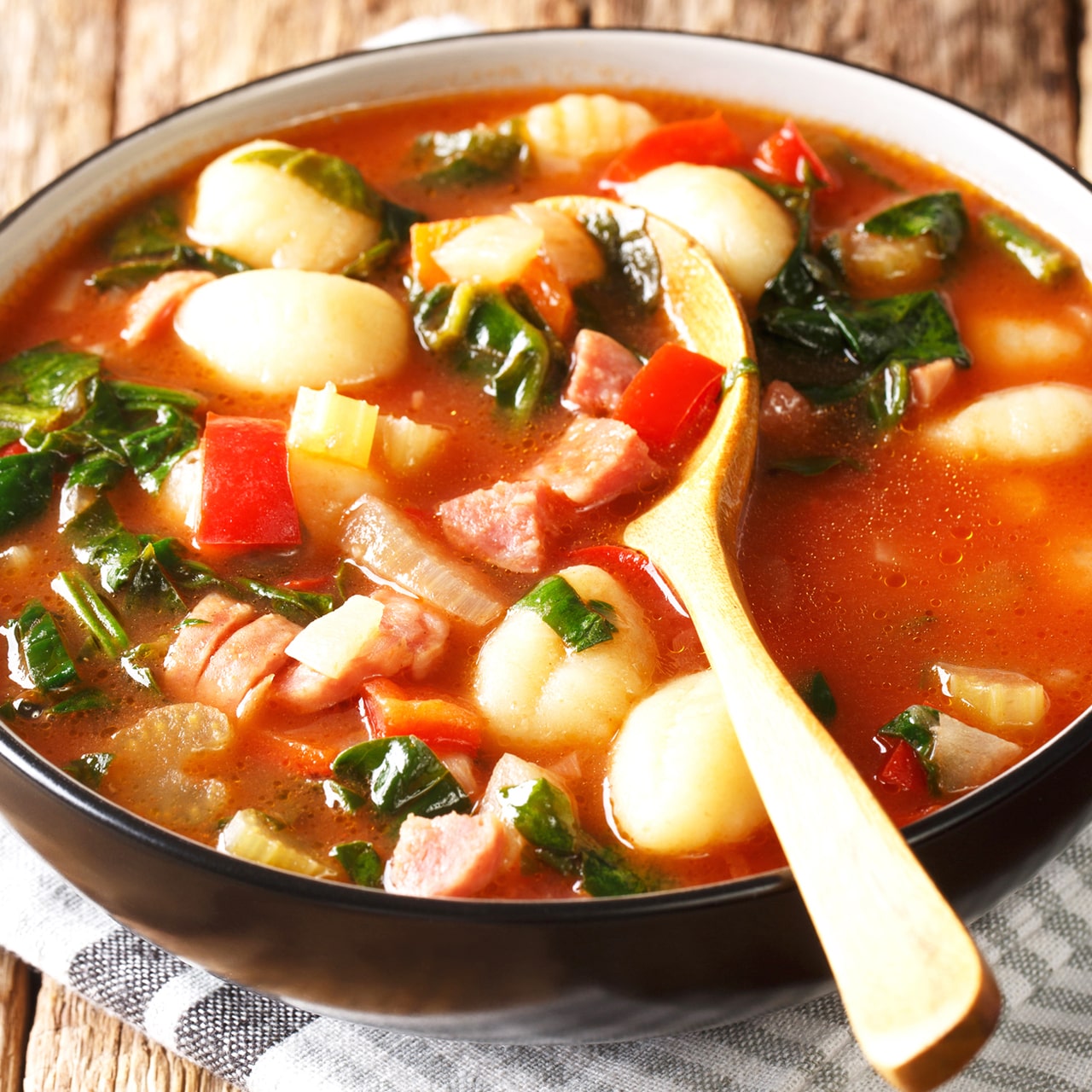 満腹感を満たすなら温かいスープ系のニョッキもおすすめ。もちもちしたニョッキはかむことでおうちごはんの満足感が得られます。トマトやクリーム系のパスタソースだけではなく、スープやおみそ汁に入れる方もおられ、意外と便利な万能食品です。