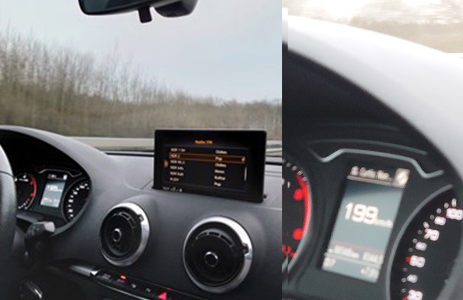 ちら見すると180㎞/hを超えていたので思わず写真を撮ったところ、Hansが調子に乗ってにやにやしながら速度を上げてきました。恐々と手振れしながら199㎞/hまでは写真に撮ったのですが、これ以上調子に乗せてはいけない!と自粛したので、200㎞/h越えは撮れませんでした。。。