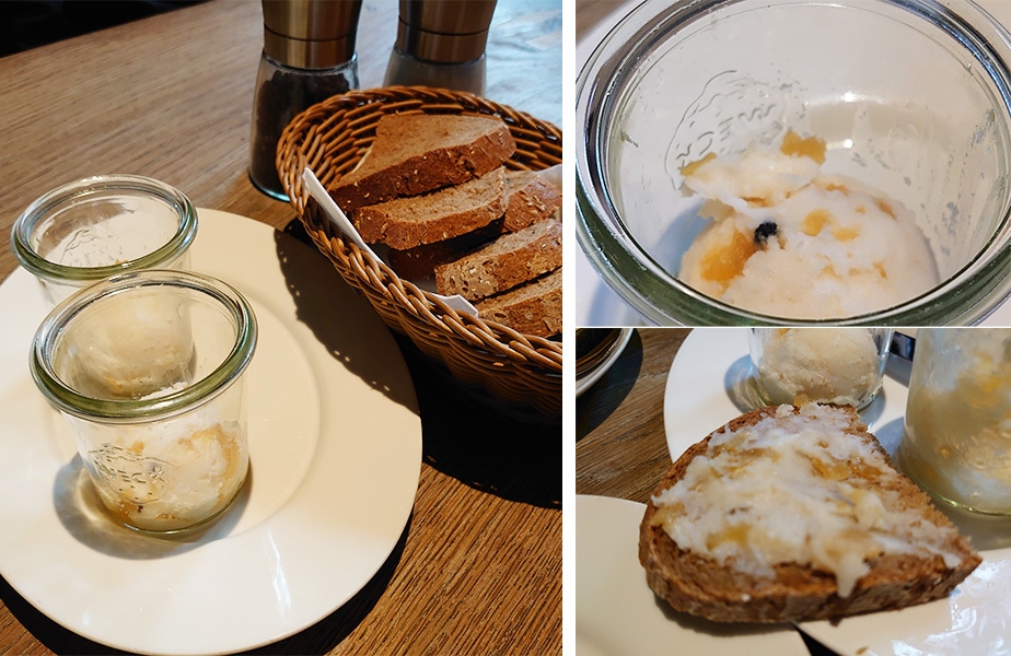 このラードに似たようなものをポーランドのレストランの前菜でも見たことがあり、おそらく北ヨーロッパのものなのでしょう。