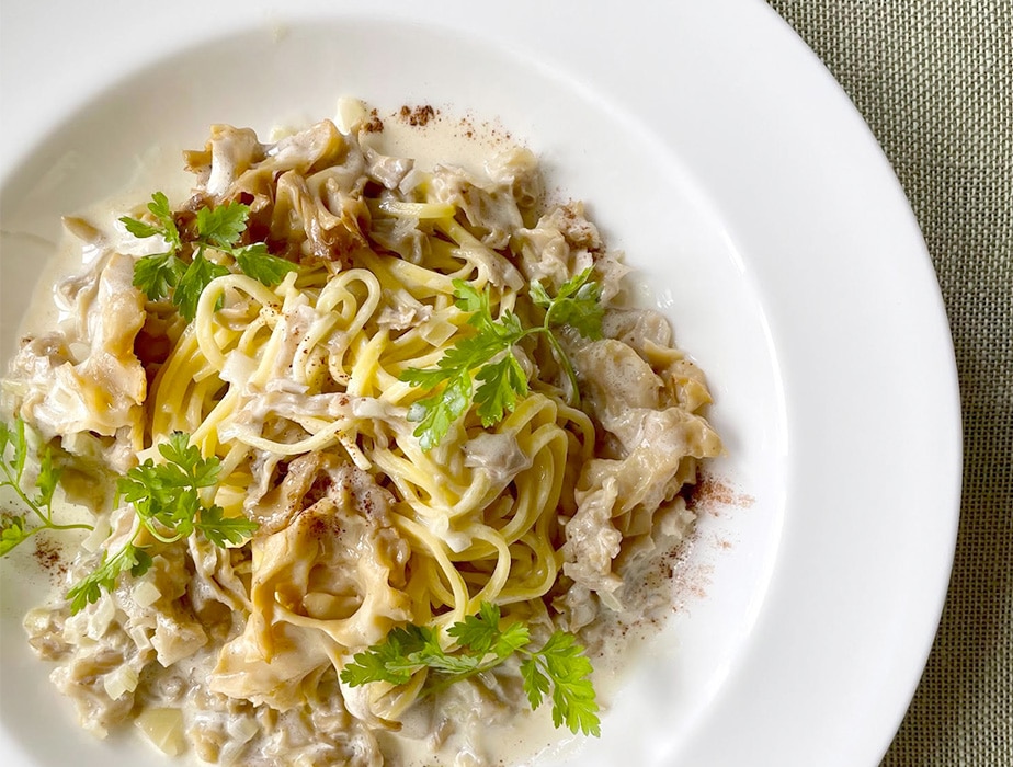 バターでエシャロットとともに炒めフレッシュクリームを加えるだけで、家庭でも美食家のパスタが出来上がります。