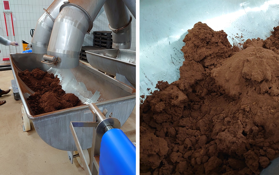 ここでは他にもノーマルクラスのココアもOEMでたくさん作っていますが、グレードの違いは味だけでなく、粉の色を見れば一目瞭然です。そしてその違いは作り方にあるのです。
