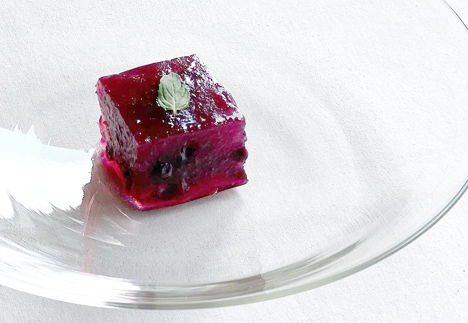 日本の和菓子から、透明感のある、見た目にも涼しげなジャムの寒天寄せです。甘さのあるジャムには寒天の歯切れのよい食感がよく合います。固まり始めてからジャムを混ぜることで、ブルーベリーの粒が沈むことなく固めることができます。暑い季節にぴったりな味わいです!