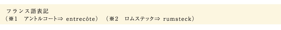 そこで、これなら日本の家庭でも作りやすいのではと思うのが、フランス風挽肉ステーキ、ステーク・アッシェです。アッシェとは“挽いた” の意味で、またの呼び名はビフテック・アッシェ。フランスの肉屋さんでは既に挽いた生肉を店頭に並べることがなく、客の注文に応じてその場でミンサーを通して挽くのが決まり。肉の挽き加減は客の好みで注文をつけることもできます。挽いた肉はステーク・アッシェ用の器具ではさんで楕円形にして渡されます。つまり形は日本のハンバーグステーキのようですが、玉葱やつなぎのパン、卵、それに塩も入っていない、まさに肉を細かくしてステーキの形にした肉なのです。 ステーキ用のリブロース(アントルコート※1)やランプ(ロムステック※2)を買うよりはるかに安く、挽いてあるので食べやすいことから、広くフランスの家庭で愛されているものです。