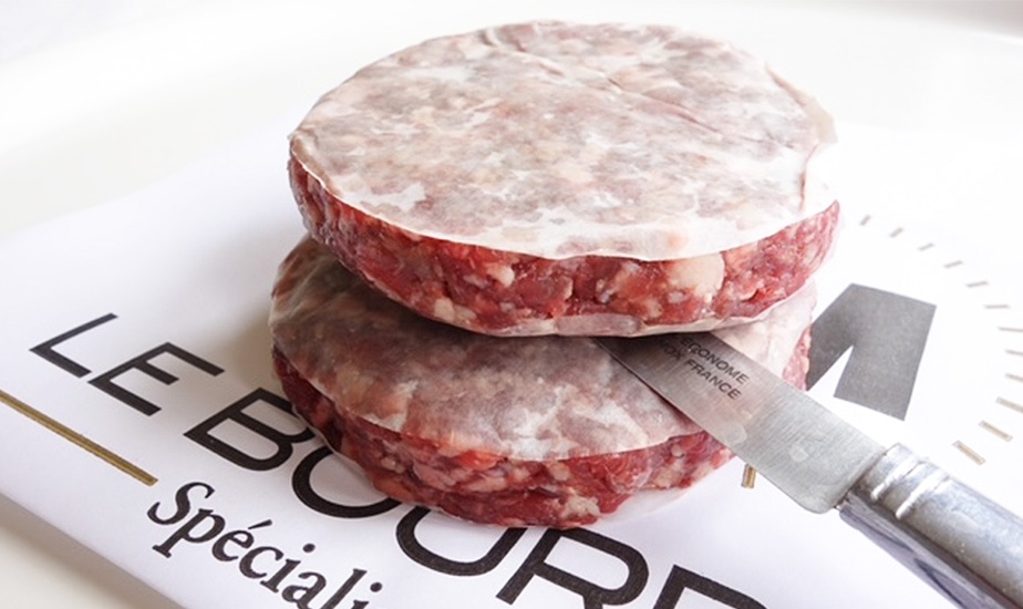 ところでマクドナルドが日常食になって久しいフランスでは、ハンバーガー用に調整された牛肉のパテを販売する肉屋さんもチラホラ。気が利いた店ではパン屋さんとコラボしてバンズ(丸パン)も取り扱っています。写真でご覧のような有名店であれば肉の質は間違えなく、一般的な肉屋さんのステーク・アッシェより肉のひき加減が粗いところが気に入っています。
