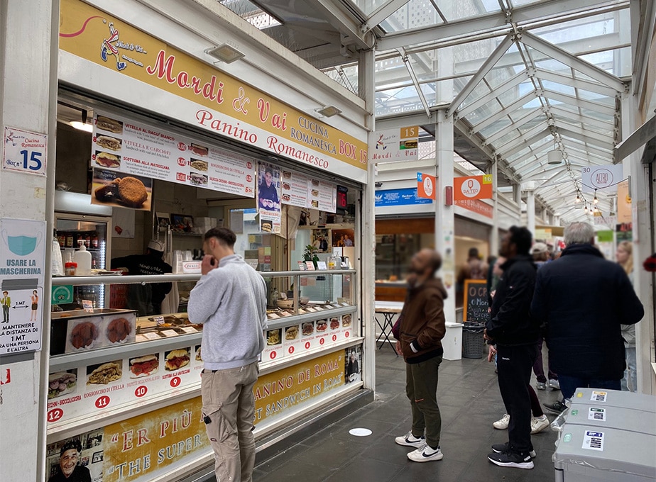 ここに「モルディ・エ・バイ」という、ローマで一番人気といわれるストリートフード店があります。