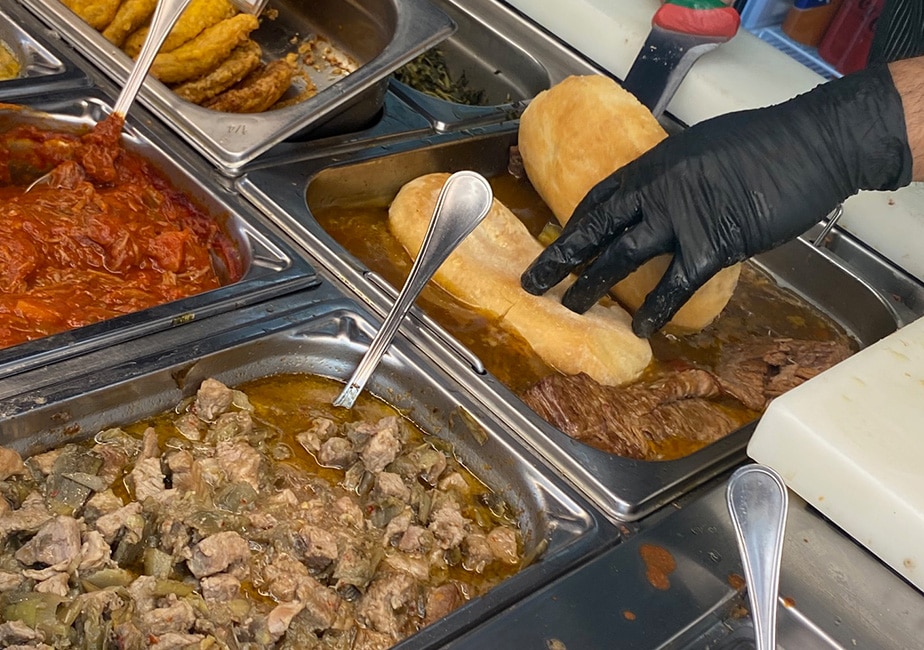 連日行列ができるこのお店の名物は、ローマ郷土料理をチャバッタで挟んだパニーノ。
