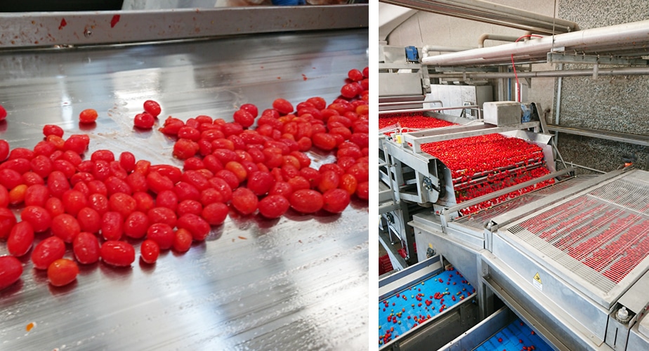 トマトは7月下旬~9月にかけて2か月間で収穫し、加工されます。一貫して作る大規模なメーカーもある一方、栽培農家、加工工場、出荷工場とそれぞれが大中小の規模で分業しているのがほとんどです。