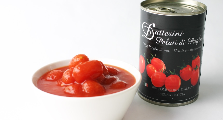 皮なしタイプのダッテリーノトマト(ダッテリーニ)はメーカーにとっても大変な作業で、100%の皮を除くことはまだできていません。