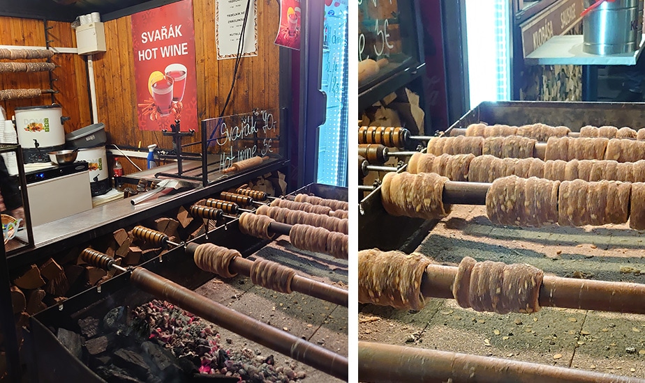 それは「トゥルデルニーク」と呼ばれるパンのようなものです。特に観光客が集まるエリアには10メートルおきにこのお店があると思われるほどたくさんあります。